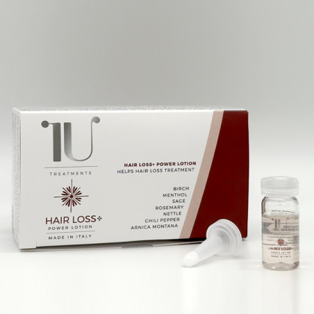 IU HAIR LOSS POWER LOTION - ampułki przeciw wypadaniu włosów ( silnie energetyzujące)- produkt o dużym stężeniu ekstraktów roślinnych takich jak: kapsaicyna, mentol, brzoza, szałwia, rozmaryn, arnika, które silnie pobudzają mikrokrążenie skóry głowy, dotleniają i odżywiają cebulki włosa. Skutecznie zatrzymują wypadanie włosów oraz oczyszczają mieszki włosowe.